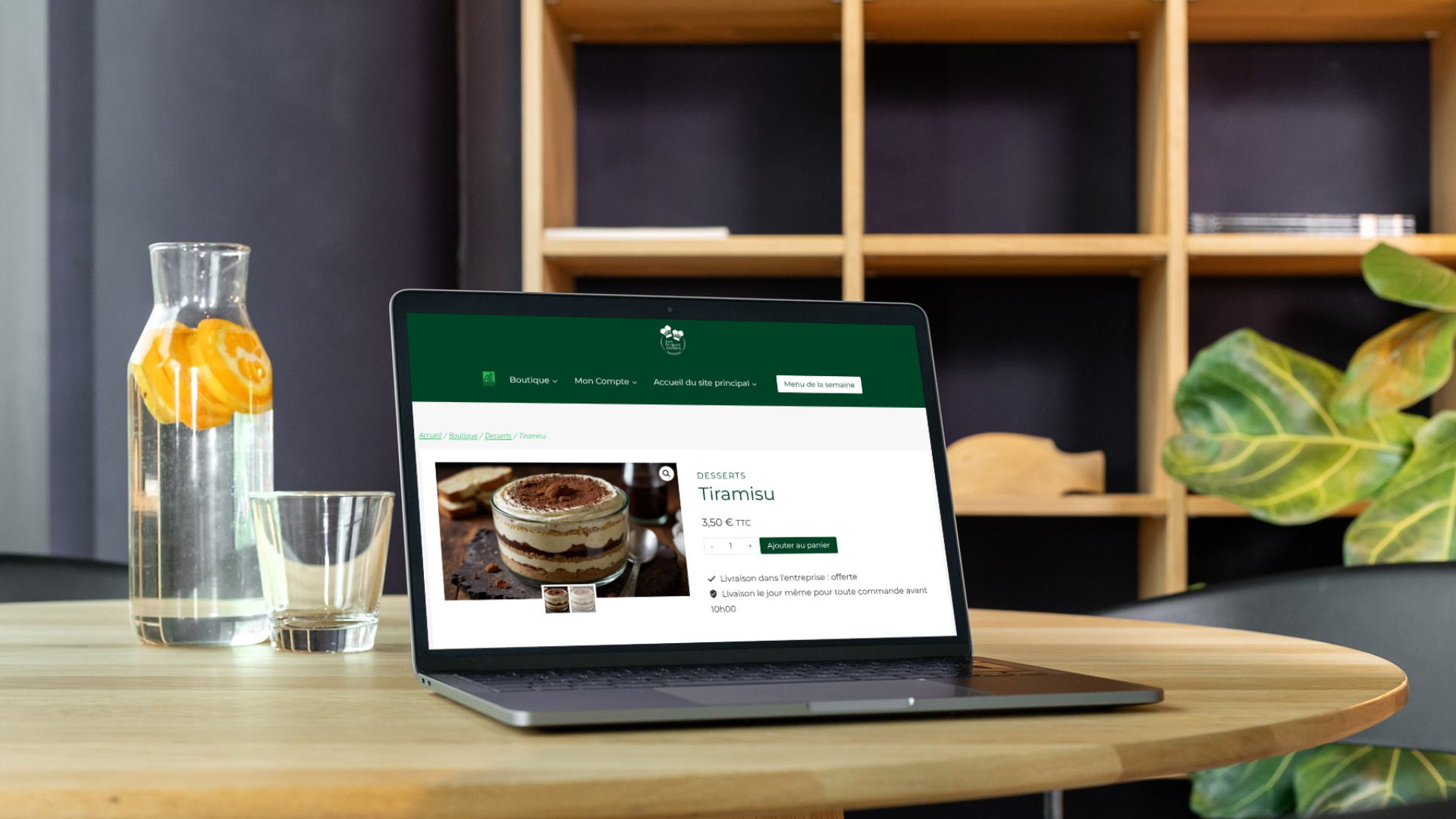 – Intégration et configuration de Woocommerce et Orderable afin de permettre la présentation, la commande, le paiement et la livraison des produits du traiteur