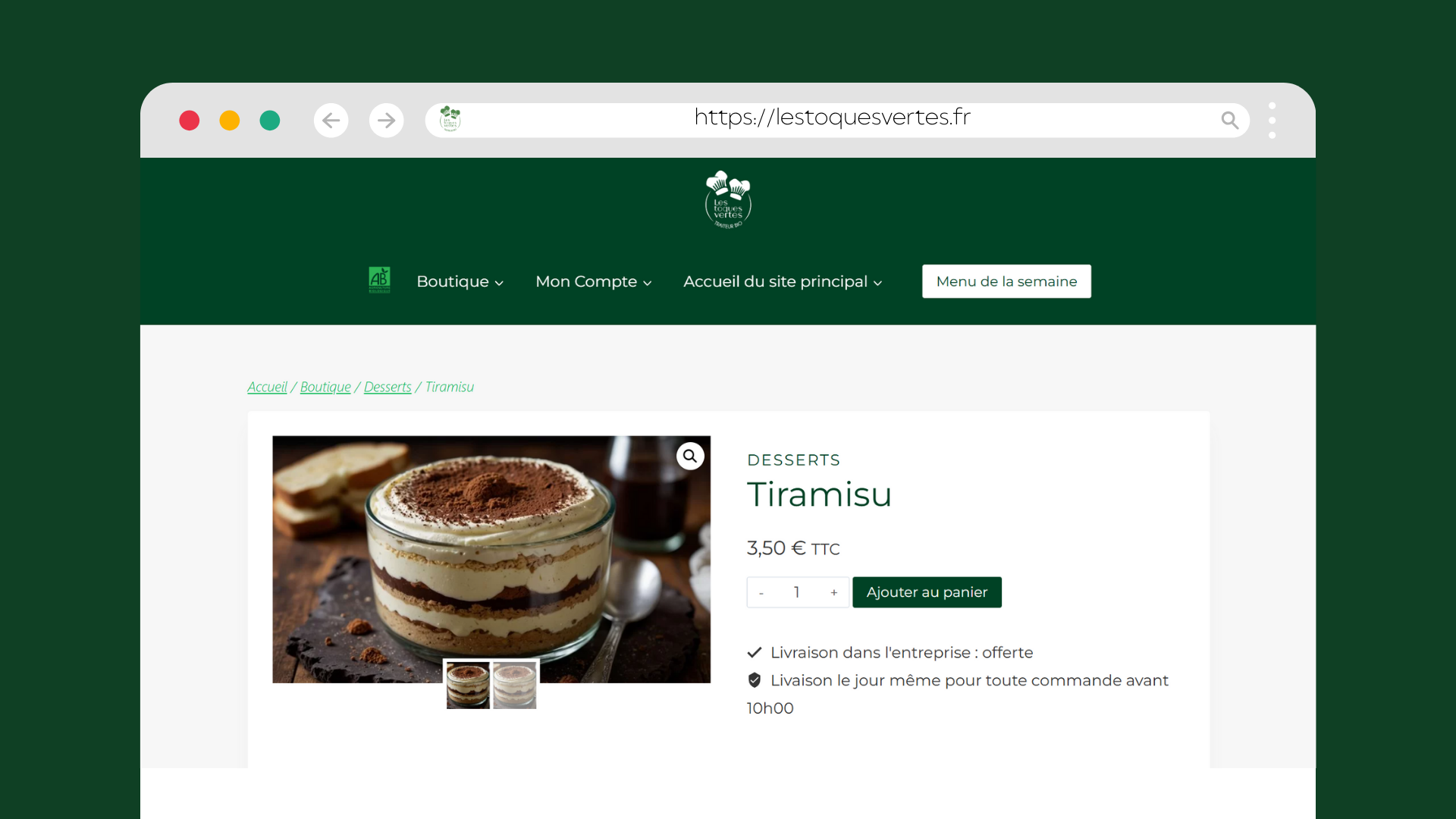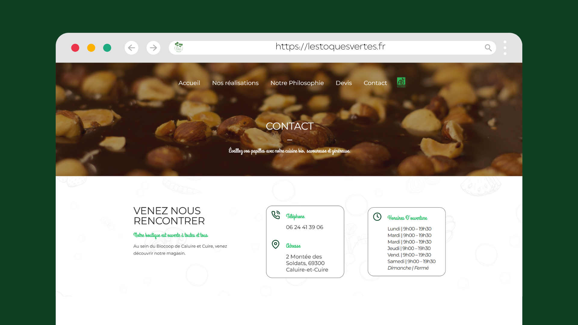 Les Toques Vertes est un traiteur bio sur Caluire-et-Cuire. Ils souhaitaient refaire leur site internet en y intégrant une boutique en ligne pour les clients qui ont l’habitude de se faire livrer des plats dans leur entreprise.