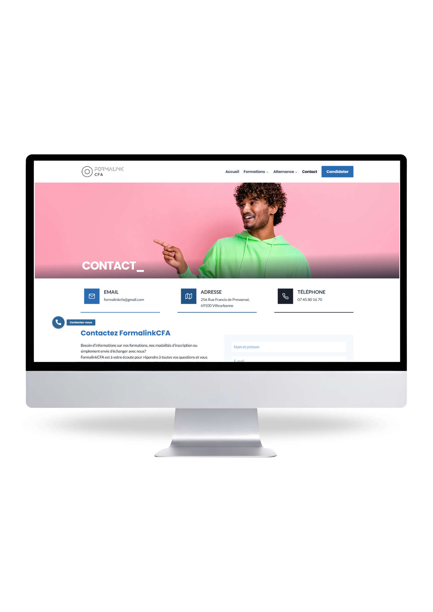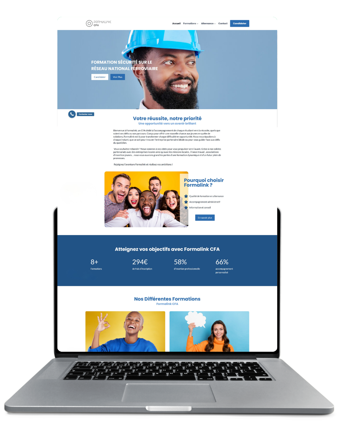 Pour FormalinkCFA : j’ai repris un site laissé inachevé pour le finaliser, l’harmoniser et le sécuriser afin qu’il reflète réellement l’identité de l’école.