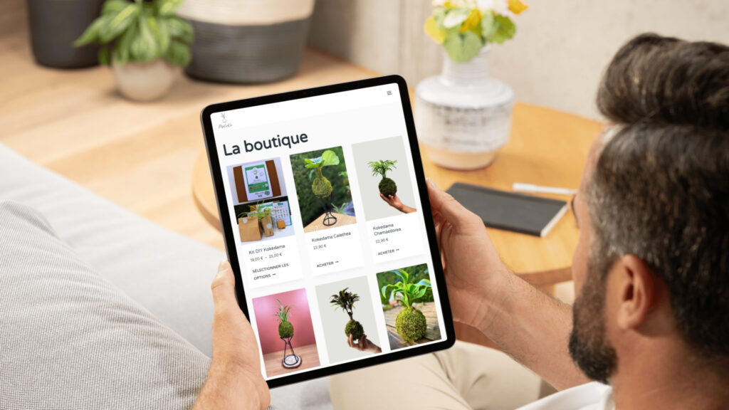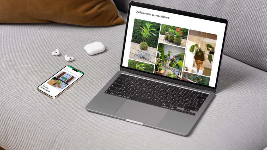 Notre envie est de présenter les produits le plus efficacement possible sur une page vitrine, ainsi que les services associés ( ateliers découvertes de création de Kokédama, atelier teambuilding), ainsi que de proposer la vente en ligne de Kokédama, de bons cadeaux, et la réservation d’ateliers.